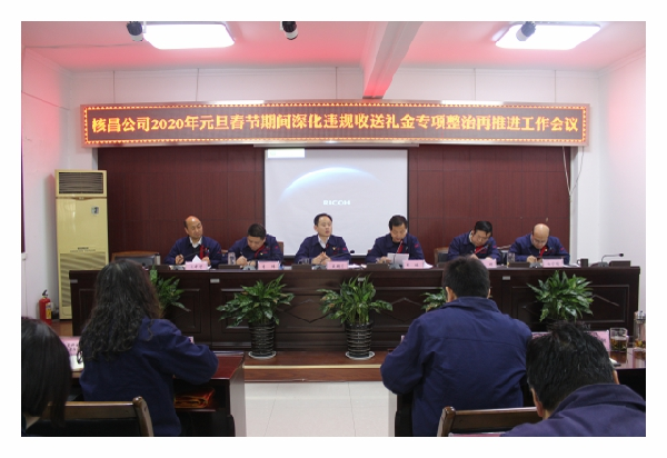 1月18日,核昌公司在公司大會議室召開了2020年元旦春節期間深化違規收送禮金專項整治再推進工作會,專題部署了公司下一步的專項整治工作,公司領導班子成員、全體中層干部參加了會議...