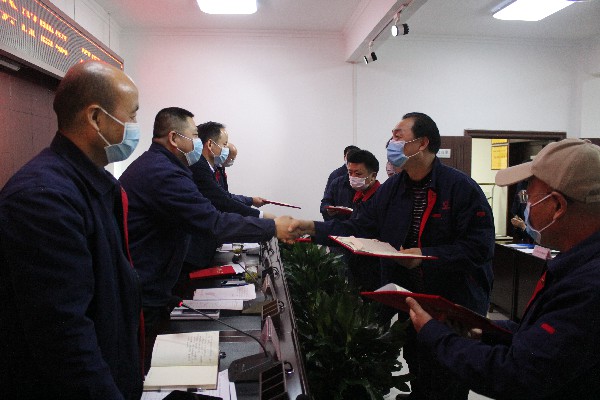 隨后,紀委書記任中賢宣讀了公司關于表彰2019年度安全生產先進個人的決定,公司領導為獲得表彰的先進個人頒獎,同時希望獲得表彰的各位同志再接再厲,在接下來的工作中繼續發揮好模范帶頭作用,為全年安全目標的實現貢獻力量。